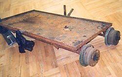 The installation "A Quadroon Woman" represented a number of objects (such as a cycle training machine, a bathtub, a cart etc.) which were used in previous program projects and concerned Liza Morozova's image and activity within the group as well as symbolized the woman. The objects were in dynamic positions scattered disorderly around the exhibition hall. Composition center of the installation presented a sculpture set on a pedestal depicting in a realistic manner the main character of the project i.e. Liza Morozova a quadroon woman. (The name implies the idea of "blood" relation existing between this woman artist and the group and the fact that Liza's contribution to the group of four participants constitutes one fourth).