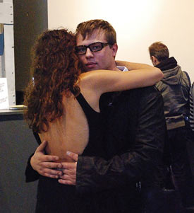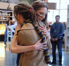 вступают в очень личный невербальный контакт с отдельными входящими зрителями: очень тепло