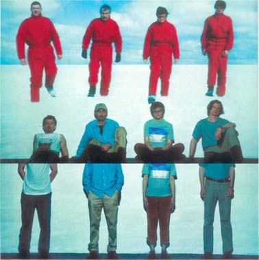 второй отбрасывает челку, третий застегивает ремень, четвертый