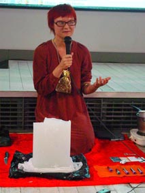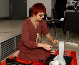 * There is an idiom in Russia “to give somebody for the soap” that usually is used for judges or sport referees if they are not fair, or unjust. It comes from the process of making soap where people used as a soap base natural fats of the animal bodies (for example, dead cats or dogs). The artist uses this metaphore as the main concept of her Performance.