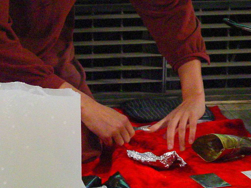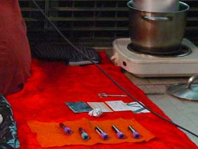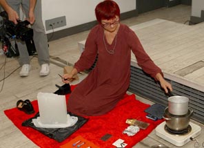 Materials: electric hotplate, 5 kg of the soap base, my hair, my nails, 5 containers of my blood, 2 pots, scissors, my shoes, my personal cards, knife.