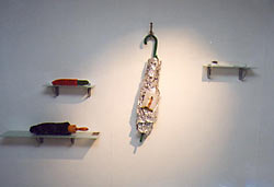of objects forming the installation and posters representing each
