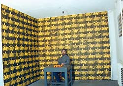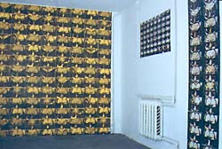 Стены галереи плотно покрыты различными изображениями, трансгрессивно
