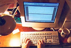 рыжеволосая девушка Лиза, непрерывно строчащая что-то на компьютере.