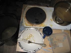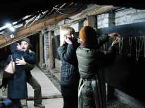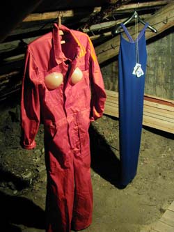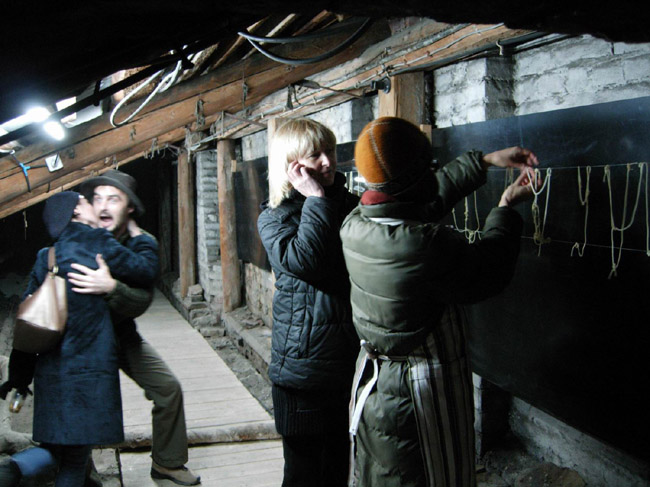 Белка&Стрелка. «Драмамаскарад». Выставка Лизы Морозовой. Собачки Белка и Стрелка были не просто собачками, а собачками девочками, суками то есть. Таким образом, женская тема в космосе началась не с Терешковой, а раньше. В галерее эта тема вполне звучала и до Лизы Морозовой, но такого откровенно женского искусства, какое показала публике участница Венецианского биеннале 2005 года, чердак дома №127 по набережной Фонтанки не видел со времен, когда квартирные хозяйки сушили там постиранное белье. Девушка наварила макарон в кастрюльке и развесила их на проволоке, аккуратно натянутой вдоль кирпичных стен. Процесс развешивания лапши продолжался несколько часов и проходил под грифом перфоманс. Без тени улыбки, скромно и последовательно в геометрические узоры было превращено 3 пачки изделий из твердых сортов пшеницы. О, это искусство говорили знатоки, это смешно говорили квартирные хозяйки, это мука высший сорт, сказала Лиза и уехала жить в Нью-Йорк.
