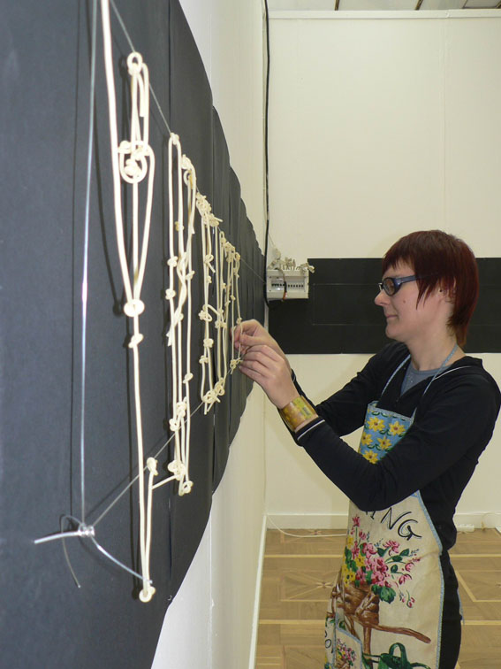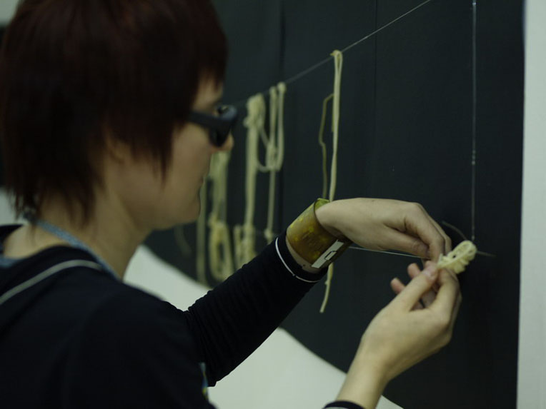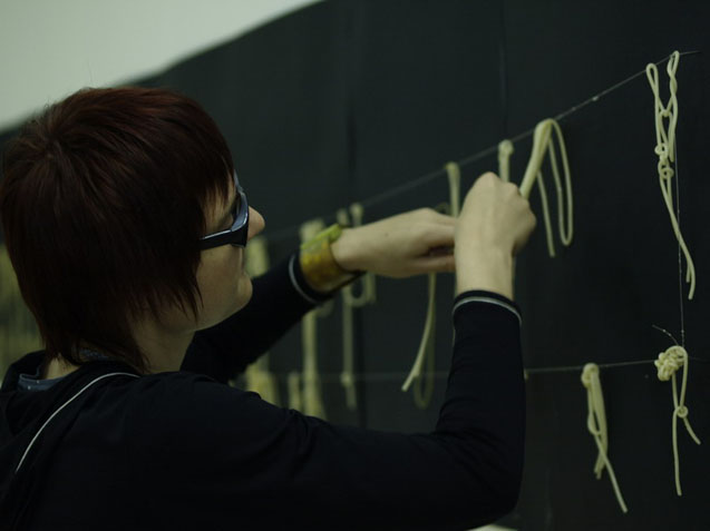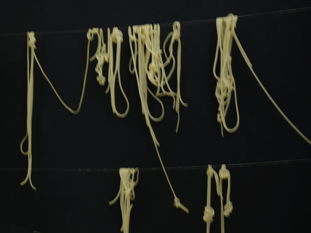 На протяжение всего вернисажа я медитативно создаю из вареных макарон