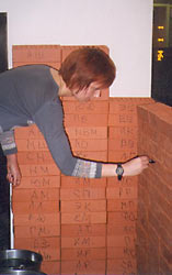 На каждом из кирпичей Л.Морозова написала инициалы одного из кураторов,