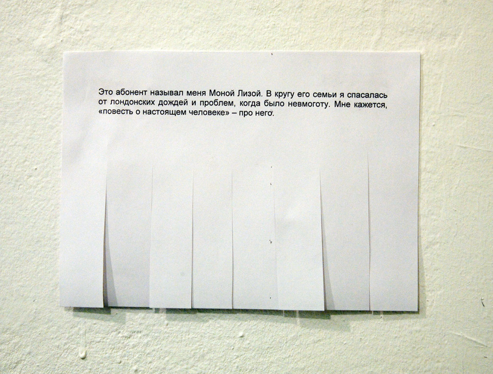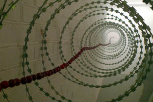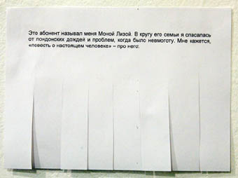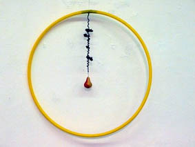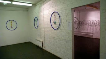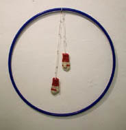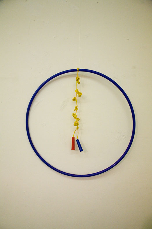 Лиза Морозова представляет очередной (с)виток своего знаменитого узелкового письма. Она вязала спагетти, теперь телефонные шнуры, цепочки от ключей, скакалки. Символика чиста и прозрачна, как слеза ребенка. Все объекты имеют отношение к каналам коммуникации. С телефонными проводами и замочными цепями не стоит даже и затеваться объяснять. Хулахупы, в которые вписаны узловые объекты, очевидные мифологическо-циклические фреймы дурной повторяемости, зацикленности на подлежащей симптому фиксации. А вот скакалки? Скакалки - это канаты, привязывающие нас к детским воспоминаниям, а значит, и фиксациям. Мы прыгаем со скакалкой, так переживая кинетически возможность отрыва от почвы с неизменным к ней припаданием: Воображаемое-Реальное, Реальное-Воображаемое. Узлы - завязи новых языковых почек на давно умолкнувших голосах давно сгинувших в прошлое одноклассников.ру. "О, сколько их упало в эту бездну!"