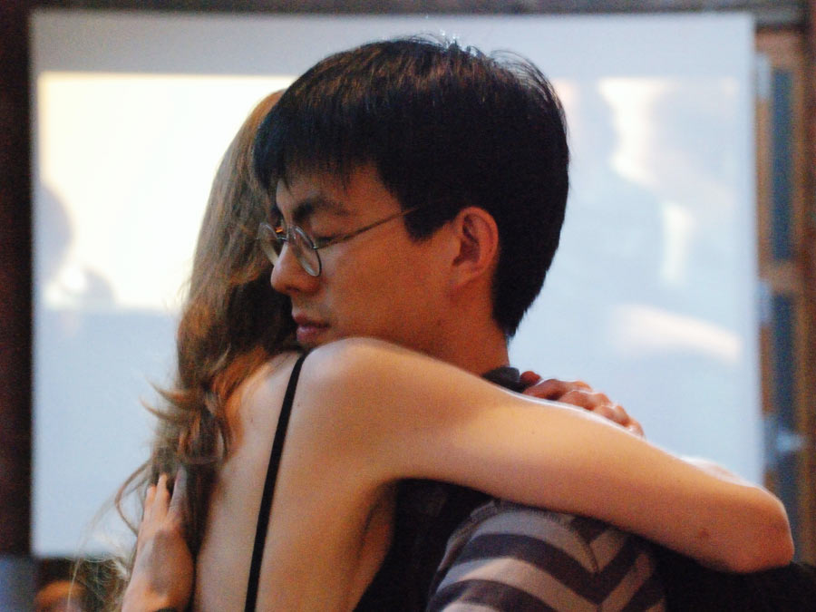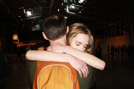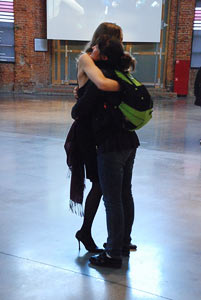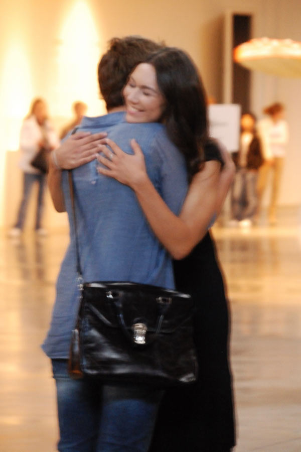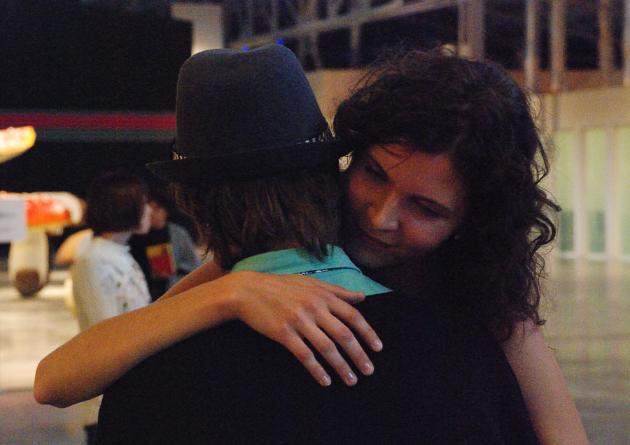 вступают в очень личный невербальный контакт с отдельными входящими зрителями: очень тепло