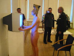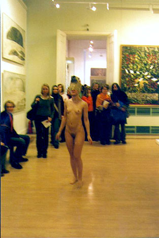 вернисажную публику в видеозаписи, сделанной раздетой женщиной, от той же