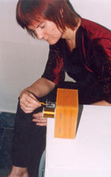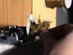 Я привязываю золотую нить к ручке шарманки.