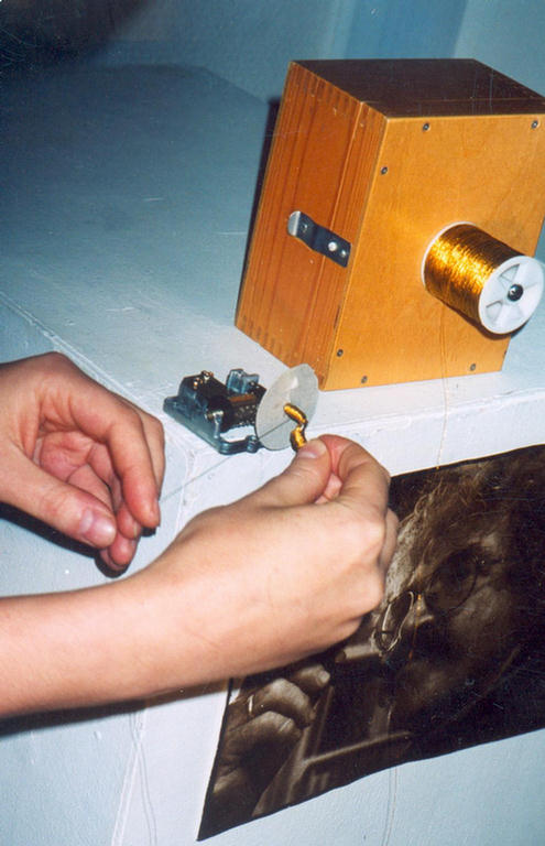 Золотая нить постепенно полностью наматывается на шарманку, лишая