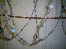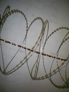 создано произведение. Внутри полой витой «трубы» из колючей проволоки пропущена