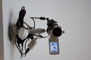 Итак, в пустой комнате под потолком прикреплена видеокамера, которая соединена с компьютером. Также в комнате находится видеомагнитофон, и пара стерео динамиков. Компьютерная программа делит видимое через объектив поле пола на несколько частей. В зависимости от изменения состояния каждой части, включается тот или иной саундтрек. Каждый из них воспроизводит шумы, характерные для разных мест квартиры (столовая, кухня, ванная и так далее). Когда посетитель приближается к одной из пар динамиков, то звук усиливается. При этом создаётся реальное ощущение присутствия в конкретном месте.