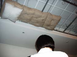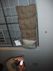 …А программа ESCAPE в новом составе (Валерий Айзенберг, Викентий Нилин, Константин Аджер) вообще закинула свое спальное место на потолок («Спящий матрас»). Они не просто поставили все с ног на голову, но и дали свой ответ на прекрасную работу знаменитой швейцарки Пипилотти Рист, которая на 51-й Венецианской биеннале укладывала зрителей на матрасы в церкви Сан-Сте для просмотра видео Homo sapiens sapiens.