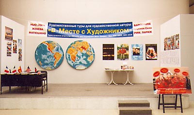 Среди этого веселого безумия своей практичностью выделяется туристическое агентство, созданное группой Еsсаре. Возглавляющий его Валерий Айзенберг пожаловался, что СМИ на выставке их игнорируют, не желая давать рекламу разработанным агентством турам под общим девизом "В-Месте с Художником". Оно и понятно - это и в самом деле настоящее ноу-хау на рынке туристических услуг, которое вполне может быть осуществлено в реальности. Эксклюзивные маршруты в крупнейшие города и деревни мира в компании с гидом-художником, предполагающие нетипичные развлечения- например, отправившимся в Нью-Йорк гарантируется завтрак с арт-звездами, отцами соц-арта Комаром и Меламидом - поможет каждому туристу почувствовать себя творческой личностью. Очевидно, это и есть главная цель "искусствотуризма".